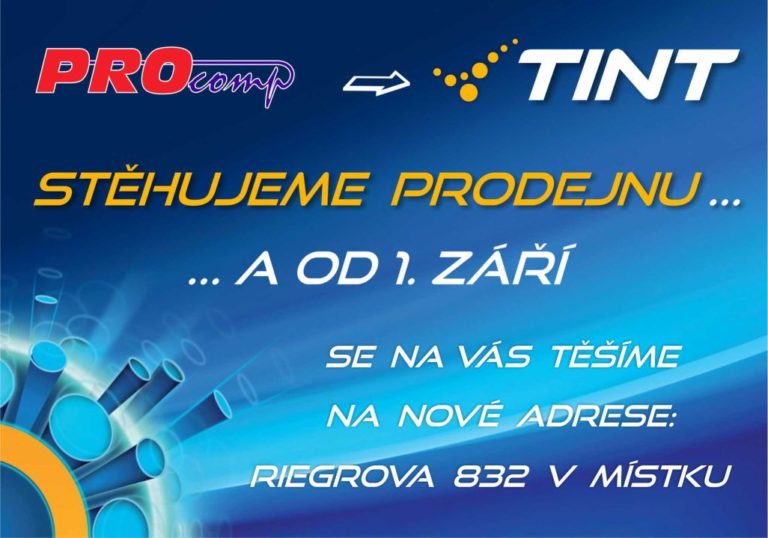 Vážení zákazníci, rádi bychom Vás informovali o přestěhování stávající a otevření nové provozovny firmy TINT s. r. o. Otevíráme 1.…